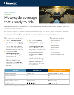 This information sheet highlights the options available with The Hanover's motorcycle coverage, and the types of bikes we insure.